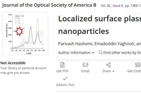 أفادت وحدة أخبار العلاقات العامة بجامعة قم، بأن مقال الدكتور فريدون بابائي، عضو هيئة التدريس في قسم الفيزياء بالجامعة، الذي نشره بالتعاون مع طلاب الدكتوراه في قسم فيزياء المادة المكثفة بجامعة قم، بعنوان "البلازمونات السطحية الموضعية في الجسيمات النانوية المعقدة ذات الغلاف القرصي"، قد نُشر في مجلة Journal of the Optical Society of America B، واختير ضمن اختيارات المحررين.